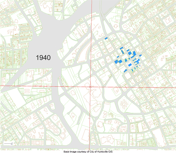 Regardless of the reasons for economic growth, we can identify several periods in history when Downtown Huntsville was obviously expanding.