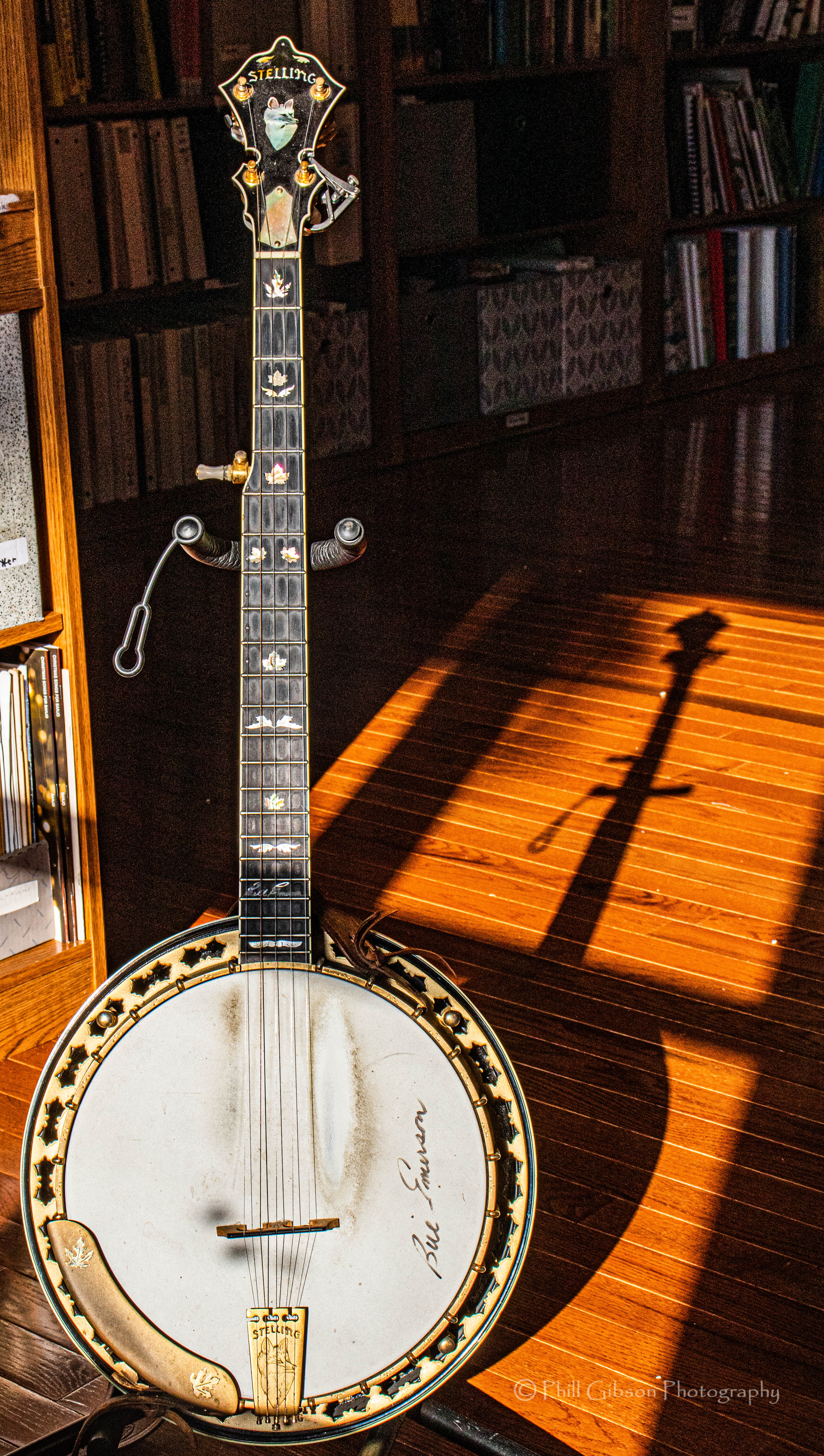 Although I don’t usually get folks to sign my instruments, because my banjo is a Bill Emerson model Stelling Red Fox, I decided to get him to sign the banjo head one year at Nashcamp. He played a song or two on my banjo before signing it, I guess that only makes sense. I believe it was Theme Time, and a bit of Fox on the Run, if I recall correctly, both tunes for which he was well-known. Notice too, his signature on the banjo head is like the one in-layed on the 19th fret.